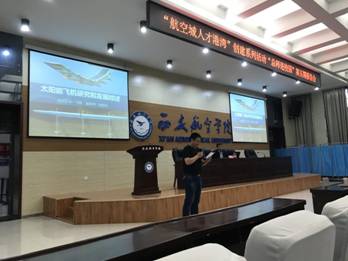 报告会上,朱胜利首先从太阳能飞机特点分析、太阳能飞机发展综述、太阳能飞机关键技术体系、典型太阳能飞机设计特征等方面进行了详细的讲解。同时,他还从一飞院太阳能飞机设计团队的探索为学生进行了讲解和展示。大量的图片展示和风趣幽默的讲解赢得了在场学生的阵阵掌声。最后,朱胜利就现场师生感兴趣的话题进行了回答和交流,他鼓励在场师生要热爱航空事业,要努力学习、积极参与科研活动,学以致用为我国的航空事业做贡献。(文、图/冯仑仑)
