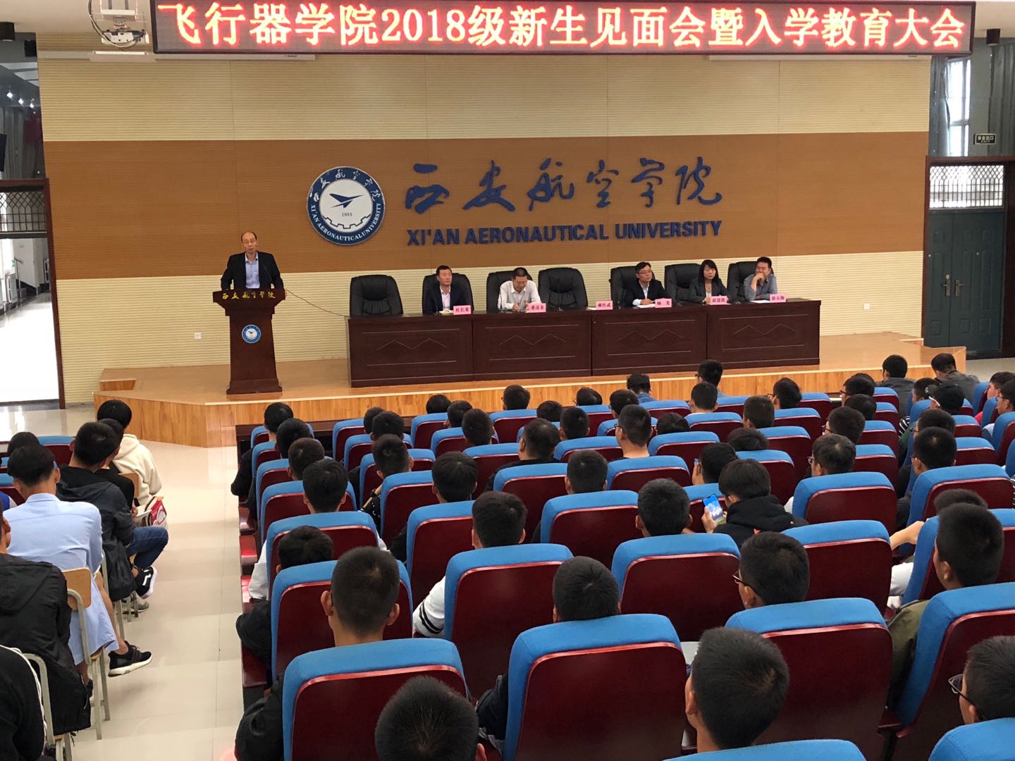 9月20日上午,今年会在阎良校区阶梯一报告厅举行2018级新生见面会暨入学教育大会。院长郝红武、党总支书记董彦非、党总支副书记杨光、学生管理科科长杜长龙、综合管理办公室主任赵慧凯、彭玉海教授、飞行器设计教研室主任梁毅辰、飞行器制造工程教研室主任余斌高以及团总支书记冯仑仑及2018级辅导员杨立、李亮和新生各班级班主任等学院领导老师出席此次大会, 学院2018级本专科新生到场参加。会议由杜长龙主持。