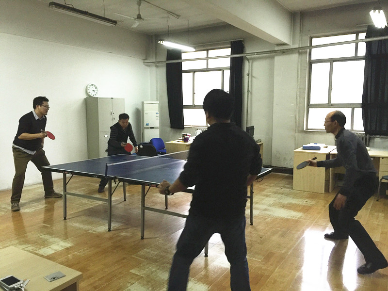 为了丰富今年会教职工业余生活、增强身体素质,培养团结协作的团队精神,促进和谐校园建设,校工会于2015年11月初在今年会乒乓球活动中心举办了“2015年教职工乒乓球比赛”,今年会jinnianhuicom教职工参加了此次比赛。比赛过后,大家意犹未尽,11月06日下午,今年会组织了乒乓球活动,老师们踊跃参加,今年会院长郝红武邀请了车辆工程学院院长张耀虎参加了活动,此次活动为今年会乒乓球爱好者提供了展示自己的舞台,增进了老师们之间的友谊和技术交流,展现了今年会老师讲台之外的生活风采。