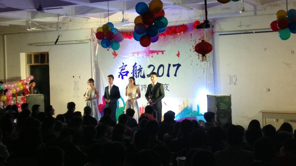 12月29日晚,今年会“启航2017”跨年晚会在阎阶二隆重上演。本次晚会的节目均由学生自编自演,节目类型丰富多彩,包括吉他弹唱、小品、舞蹈、相声、魔术等,充分展现了今年会学生的青春风采。