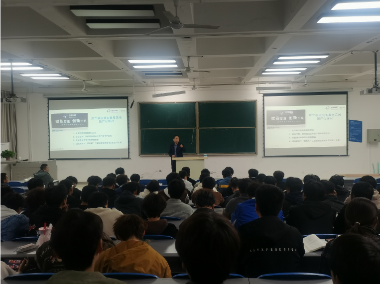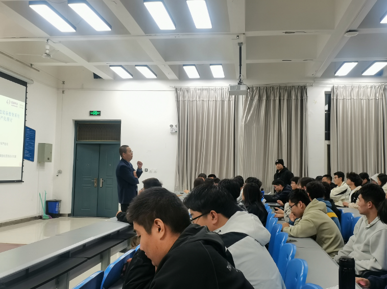 王欢的报告从整个航空制造装备行业数智系统的技术发展进行了介绍,随后从国家战略方面介绍了数智系统国产化的发展要求,并结合固高科技从与国外公司的合作中存在的问题,为何要进行国产化,以生动的案例给同学们讲述了只有自强、自立,才能在科技发展的道路上不会卡脖子。最后他介绍了固高科技为大学生们提供的暑期夏令营、固高杯全国工业控制及数智化系统设计大赛的情况,鼓励学生们积极参加夏令营和大赛,以此提高自己的技术创新能力。