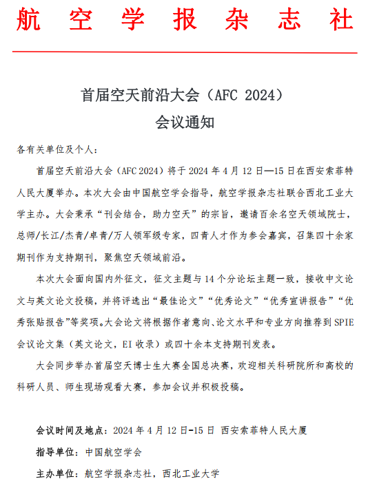 首届空天前沿大会(AFC 2024)会议通知