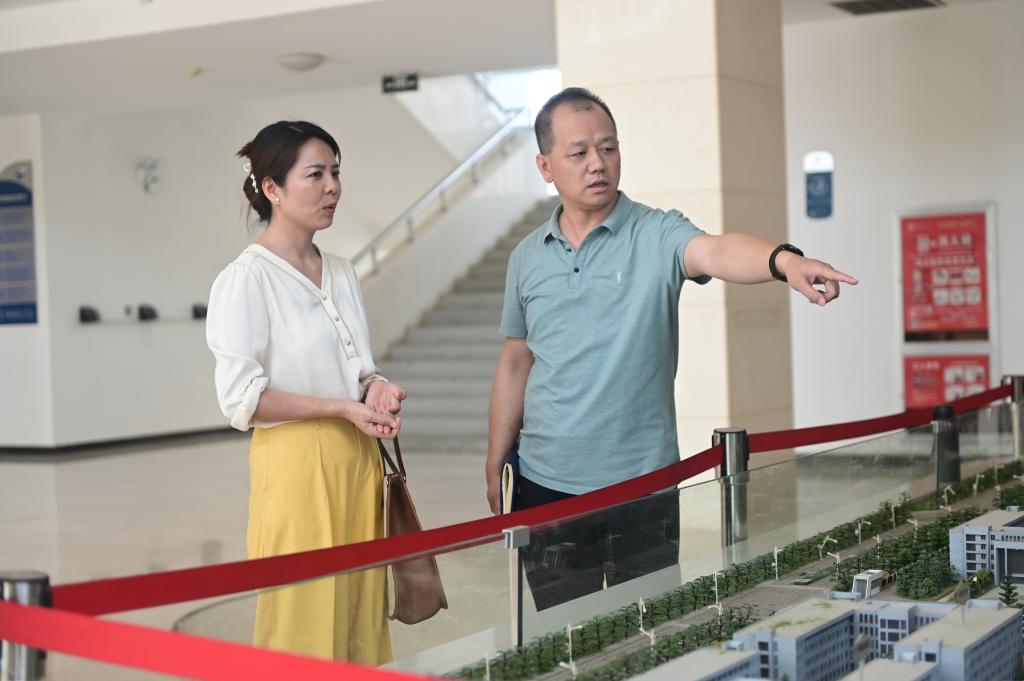 刘建强向杨霞一行介绍了学校的整体规划和学院近年来的发展情况,并陪同参观了航空文化博物馆、停机坪、航空馆及汽车科技文化馆,通过讲解员的细致专业讲解,大家对航空文化和航空知识有了进一步的了解和学习,对学校航空文化氛围的营造和航空文化建设给与高度评价。