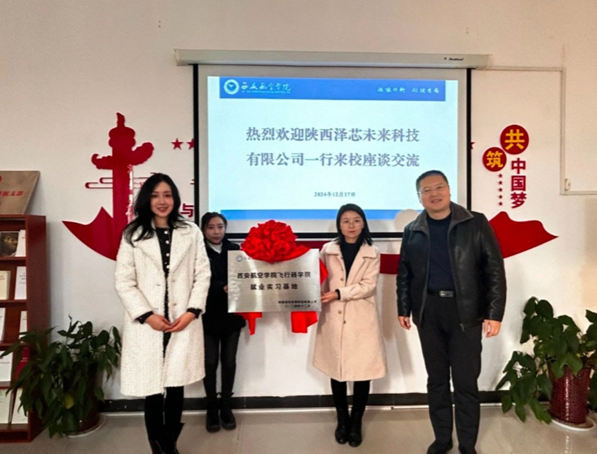 双方代表共同签订了校企合作协议,并为实习基地揭牌,就校企合作、人才培养、学生就业及实习等方面进行了深入的交流。在刘建强的陪同下,陕西泽芯未来科技有限公司一行参观了今年会的无人机实验室、航空文化科技馆、停机坪等地。随后,泽芯未来科技有限公司在阎良校区阶梯二多媒体教室进行了招聘宣讲,并在第二餐厅前的草坪上进行了穿越机飞行表演。