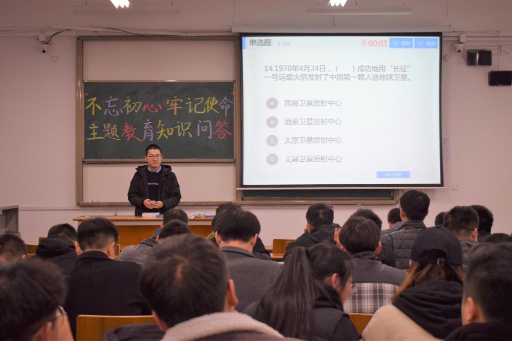 “温故而知新,可以为师矣”。为了提高党员和预备党员对“不忘初心、牢记使命”主题教育知识理解水平,提升思想觉悟,对各党员和预备党员前期学习成果进行了解,掌握各党员及预备党员对主题教育知识的学习动态,今年会学生第一党支部于11月27日晚上19点在阎教1128成功举办了“不忘初心、牢记使命”主题教育知识问答活动,本次活动由学生第一支部宣传委员李亮同志主持。