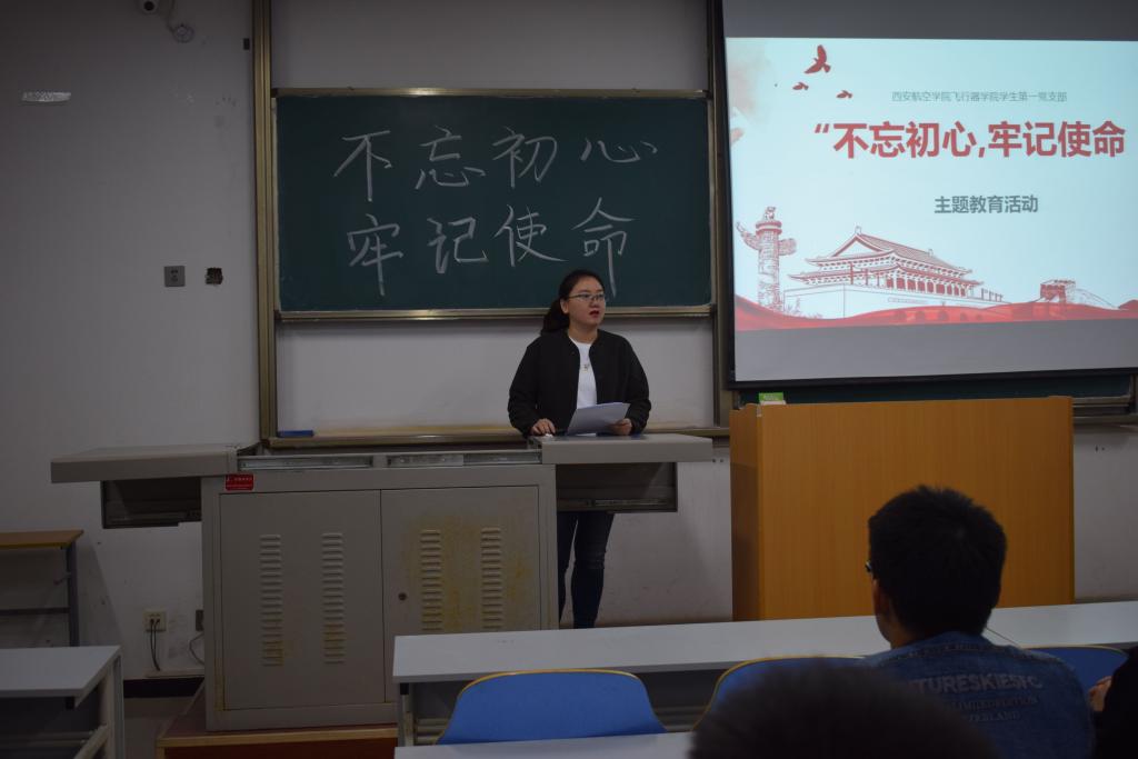 本次活动由学生第一支部书记史迪主持,首先史书记对本学期的主题教育做了整体部署和安排。本学期我支部将以主题党课和党员分组讨论等形式,逐月开展三个主题的学习活动,加深同学对“不忘初心、牢记使命”主题教育的学习。