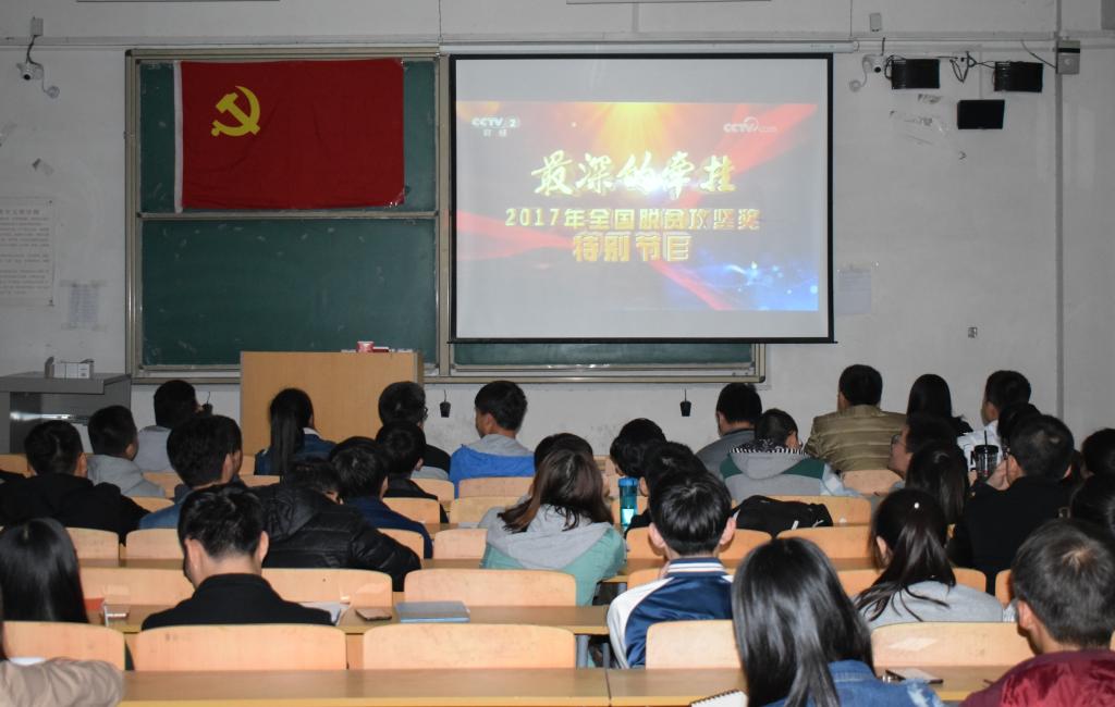 10月17日,是我国第四个国家扶贫日,也是第二十五个国际消除贫困日,党员作为我党先锋队伍,在未来党及国家的建设中必将发挥其党员先锋精神,按照陕西省高教工委通知要求,今年会积极组织师生党员于17晚九点十五分观看了中央电视台“2017全国脱贫攻坚奖特别节目”。学生党支部书记杜长龙一同观看了节目。