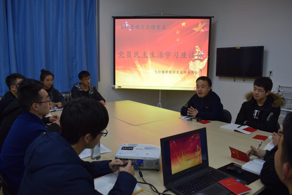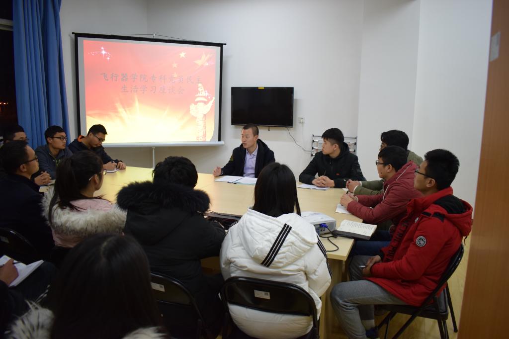 根据校党委统一安排部署及学院2017年度民主生活会实施方案要求,学生党支部分别于1月9日、11日在阎良校区召开了分专业党员学习、座谈交流会,广泛征求意见,并于1月12日召开了以“学习贯彻十九大精神,建合格支部,做合格党员”为主题的专题组织生活会,会议由学生党支部书记杜长龙主持,党总支副书记杨光以普通党员身份参加了组织生活会。