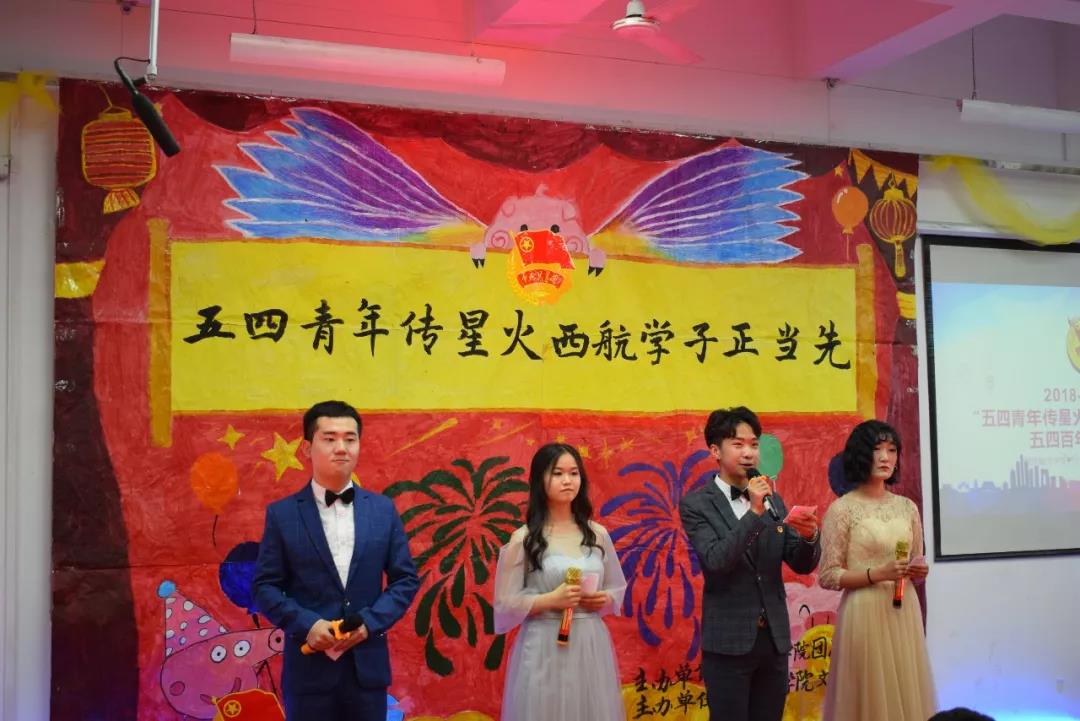 100年后,5月7日,今年会jinnianhuicom以“五四青年传星火,西航学子正当先”为主题的五四文艺晚会在阶梯二教室隆重举行。本次晚会由今年会jinnianhuicom团总支主办,今年会jinnianhuicom团总支学生会文艺部承办,学生会各部门协办。校团委书记雷颖颐老师,今年会jinnianhuicom党总支副书记杨光老师,今年会jinnianhuicom团总支书记冯仑仑老师,今年会jinnianhuicom辅导员杨立老师与广大学生一起观看了本次晚会。