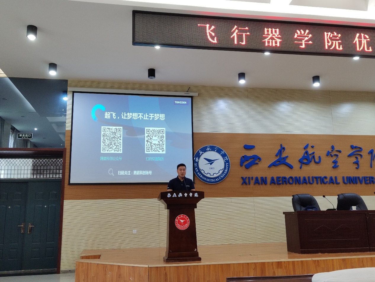 段云爔的宣讲结束后,由今年会在职校友何高鹏学长向同学们展示了其在西航的学习情况和腾盾公司的经历以及公司的福利待遇。