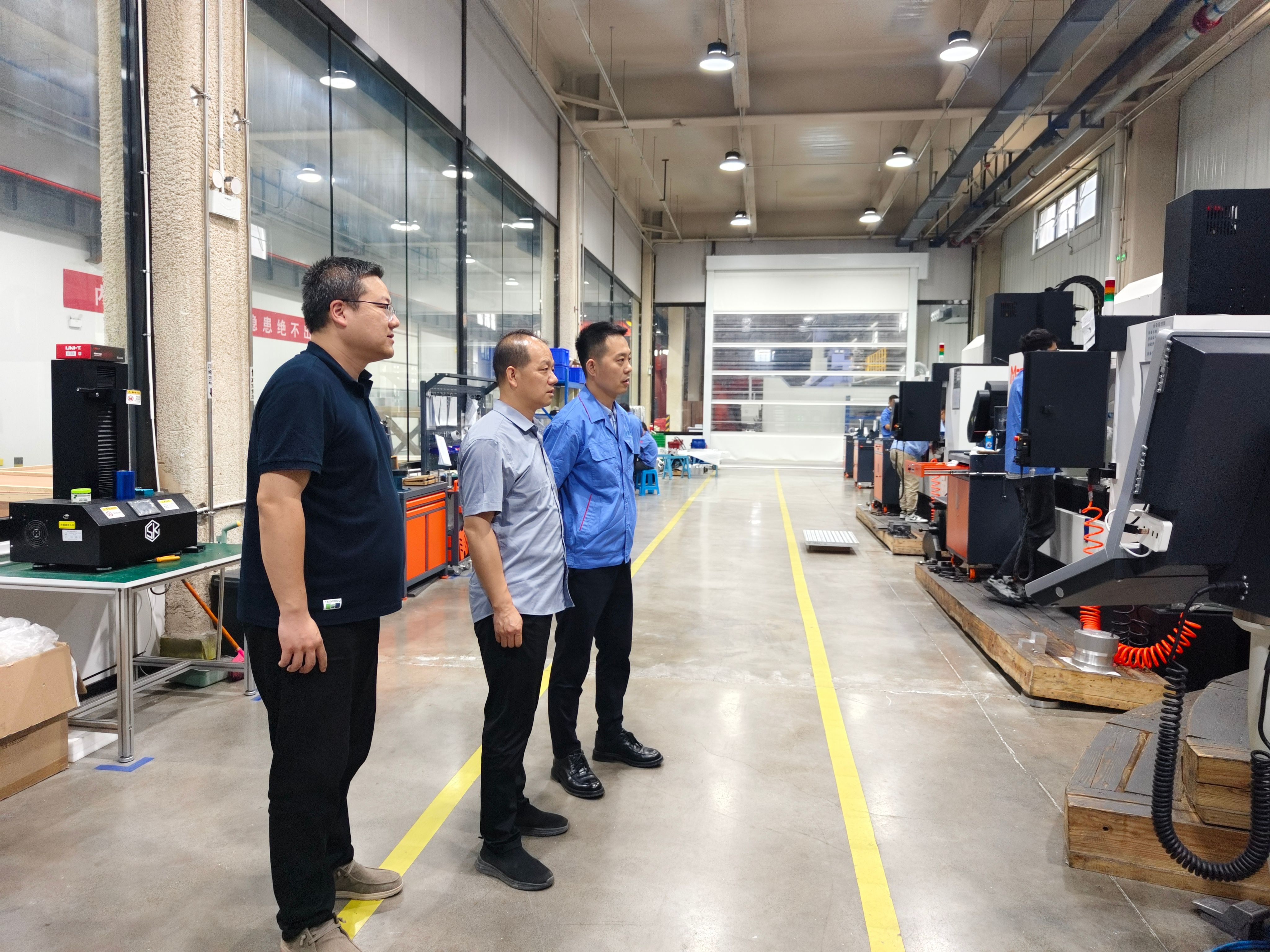 刘建强一行在陕西大前航空科技有限公司副总经理石雷的带领下参观了公司在航天基地的生产现场,随后进行了座谈交流。